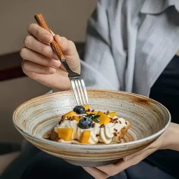 8.5-Inch Retro Ceramic Pasta Plate – Elegant Home Tableware for Desserts & Dining