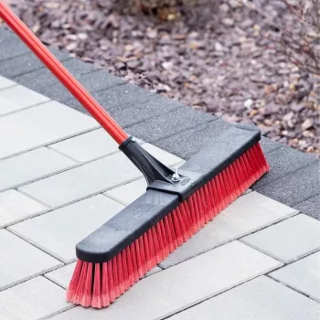 24-Inch Heavy Duty Multi-Surface Push Broom with Steel Handle – Perfect for Garage, Patio, Driveway Cleaning