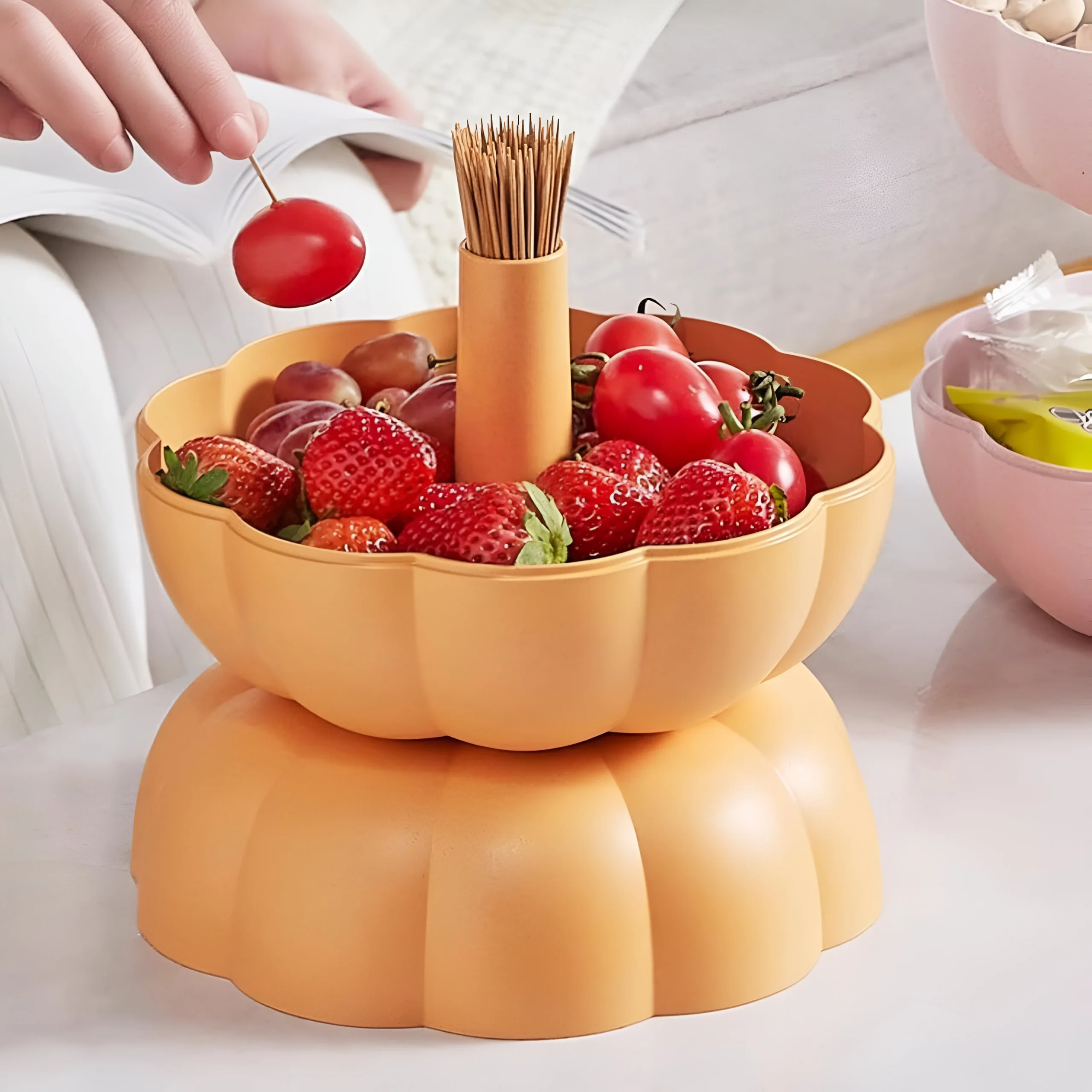 This cleverly designed serving bowl features three removable compartments that let you serve a variety of snacks without mixing flavors. Whether you’re hosting a party or simply enjoying a quiet evening, keep your candies, fruits, nuts, and other treats neatly organized and visually appealing. The integrated toothpick storage keeps things clean and convenient, allowing guests to serve themselves effortlessly. The adjustable lid and body also let you create single or double-layer presentations — perfect for any occasion, big or small.