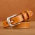 This belt is best used for women seeking a polished and timeless accessory that complements both casual and dressy ensembles. Its simple, vintage-inspired design makes it perfect for daily wear, office attire, or weekend outings. The high-quality leather ensures durability, while the classic pin buckle adds a touch of elegance. Its neutral brown color allows it to seamlessly match with a variety of outfits, making it a versatile wardrobe staple.